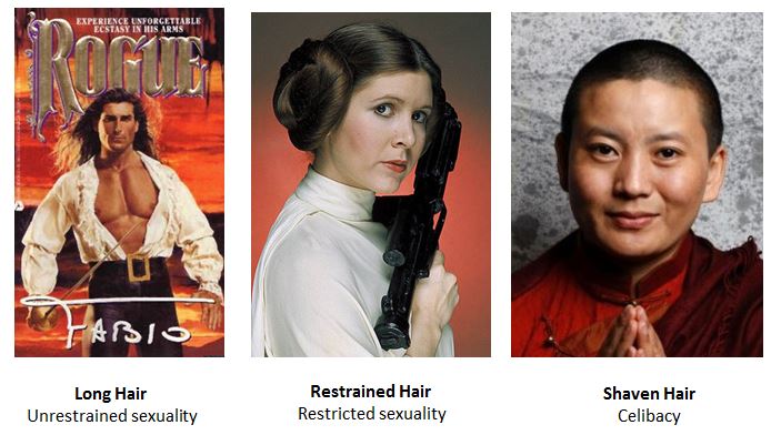 ‘psychoanalytic approach assumes a universal connection between hair and sexual virility. Short hair is signifies the acceptance of discipline and compliance with authority. Long hair signals the exact opposite’. – Lewis 2003