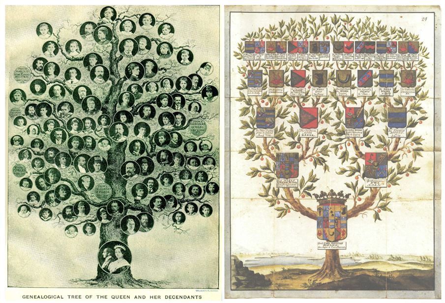 One of the most common symbols here is the family tree. If we look at how they are illustrated, we can see something interesting. The progenitors are visually larger than life and subsequent generations are diminished.