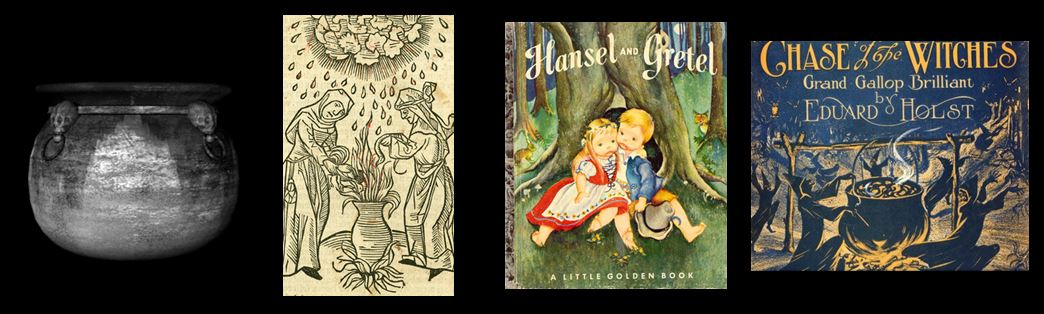 The symbolism of the cauldron, as the favourite vessel for ‘witches’ to eat life, is a consistent theme across folklore and mythology. The Latin origins of the word literally mean ‘hot bath’ which fits with the wet/decay meaning axis.