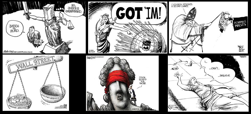On both sides of the Atlantic, lawmakers have been shown to be breaking and stretching the law. Bill Clinton managed to mangle the very definition of what a legal lie is. The Gulf War raised many challenges to concepts of international justice, e.g. the American Government claimed that lacunae or gaps-in-law amount to the non-prohibition of an action, therefore not making certain behaviour illegal. English MP’s and law lords were shown to be stealing from the public purse through their expensive claims. There is the lasting public perception of the increased tensions between the 1% and the rest of us, exasperated by the lack of criminal charges against individuals for the GFC. In the religious domain, the Catholic Church has been criticised for its criminal handling of child abuse by ‘one in 50’ of its priests. More recently, maybe not that surprising to the citizens of many nations, shadowy government departments have been illegally surveilling each other and their own citizens. In fact, it’s almost too easy to find examples where the law has been ‘broken’ though exigent circumstances or fuzzy loop holes. It’s almost expected that some new political neologism will obfuscate behaviour that previously would have been unsanctioned. All of this is cumulatively creating an impression that injustice balances out justice; where Justice should balance out the law and criminality.