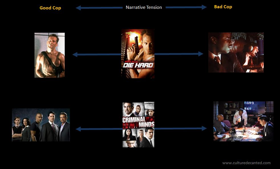 Another way to consider how popular culture shapes the way that we perceive law-enforcement is how these stories solve the need for narrative-tension. Without a tension, something to correct or resolve, stories are merely passages of words. Without tension they lack the emotional resonance that we identify and engage with.
